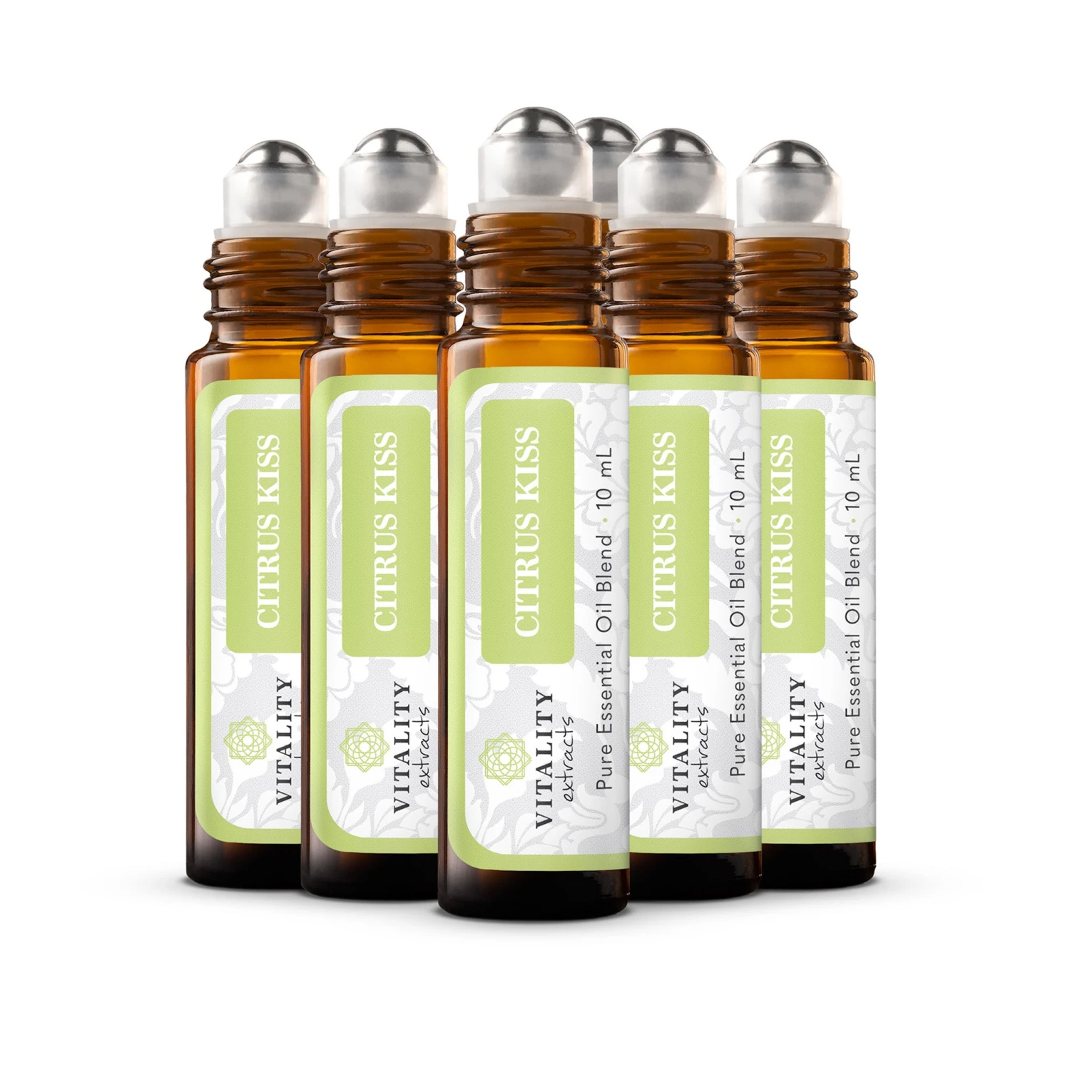 Citrus Kiss Essential Oil Blend is a delectable aromatic treasure seamlessly blending a variety of citrus notes topped with a hint of vanilla.