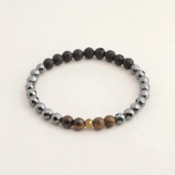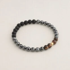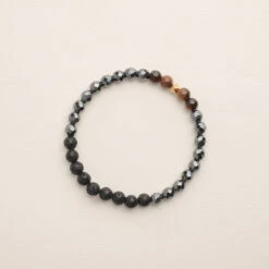This aromatherapy bracelet includes Hematite complemented with Tiger’s Eye and finished with Lava Stone beads. This piece is great for everyday wear and perfect to pair with your favorite Vitality Extracts essential oils.
