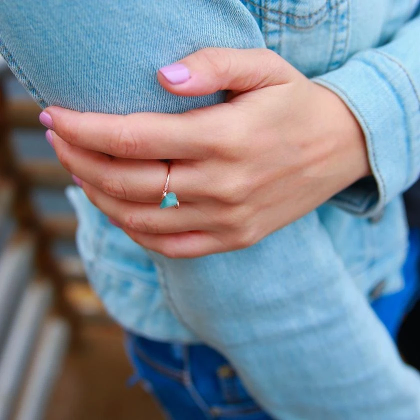 This handcrafted ring is a beautiful way to enjoy the benefits of natural energies drawn from crystals, rocks or stones. A minimalistic design to capture the essence of Amazonite.
