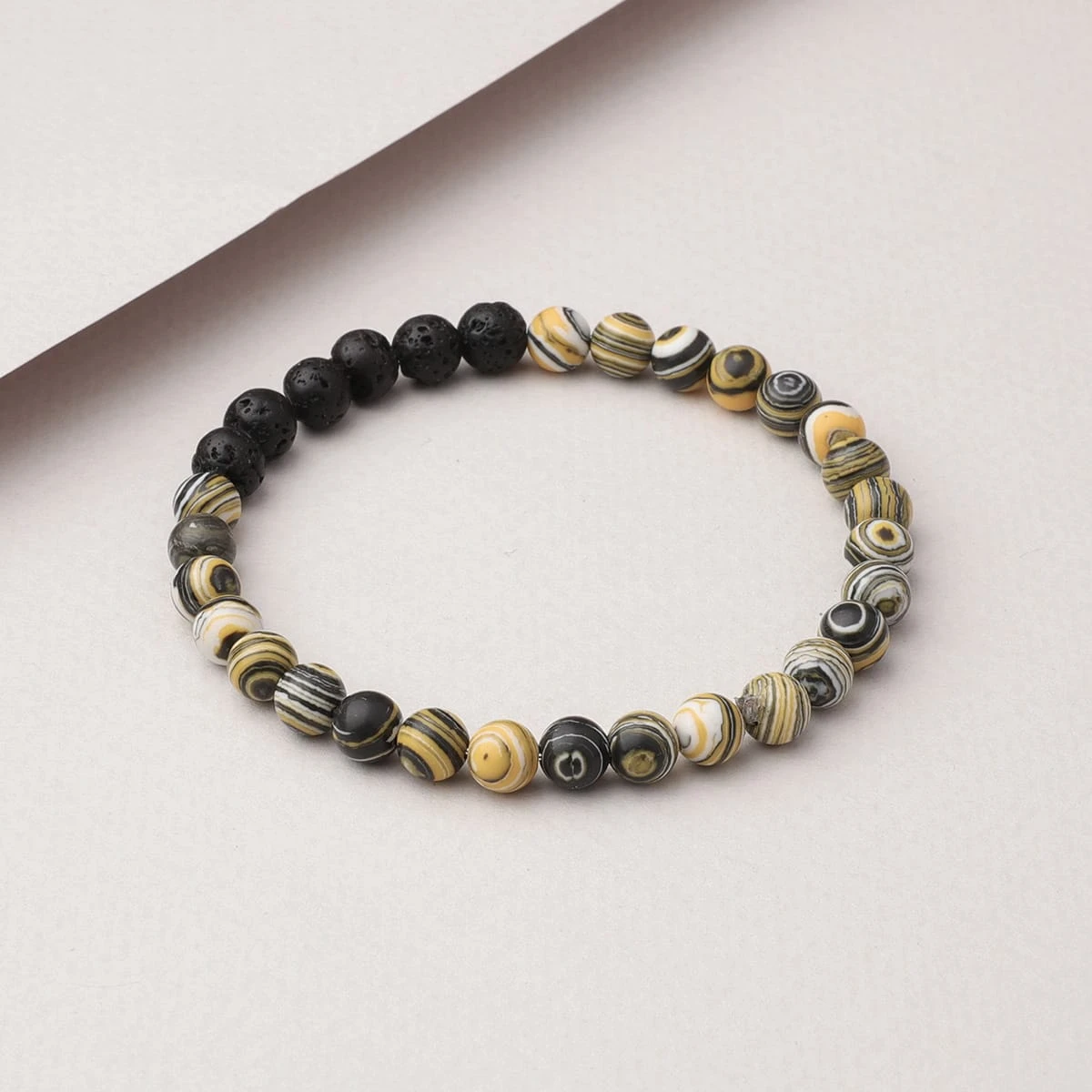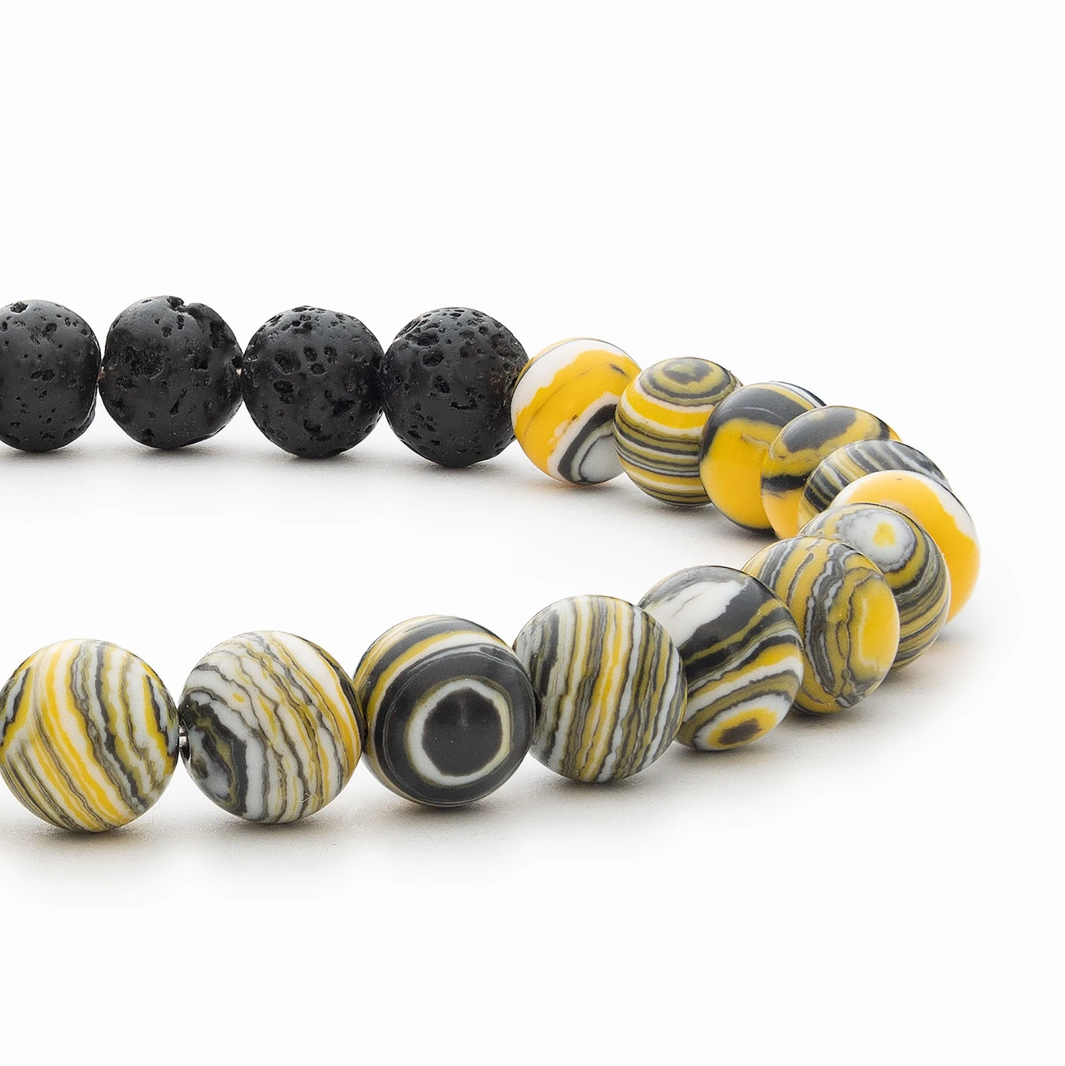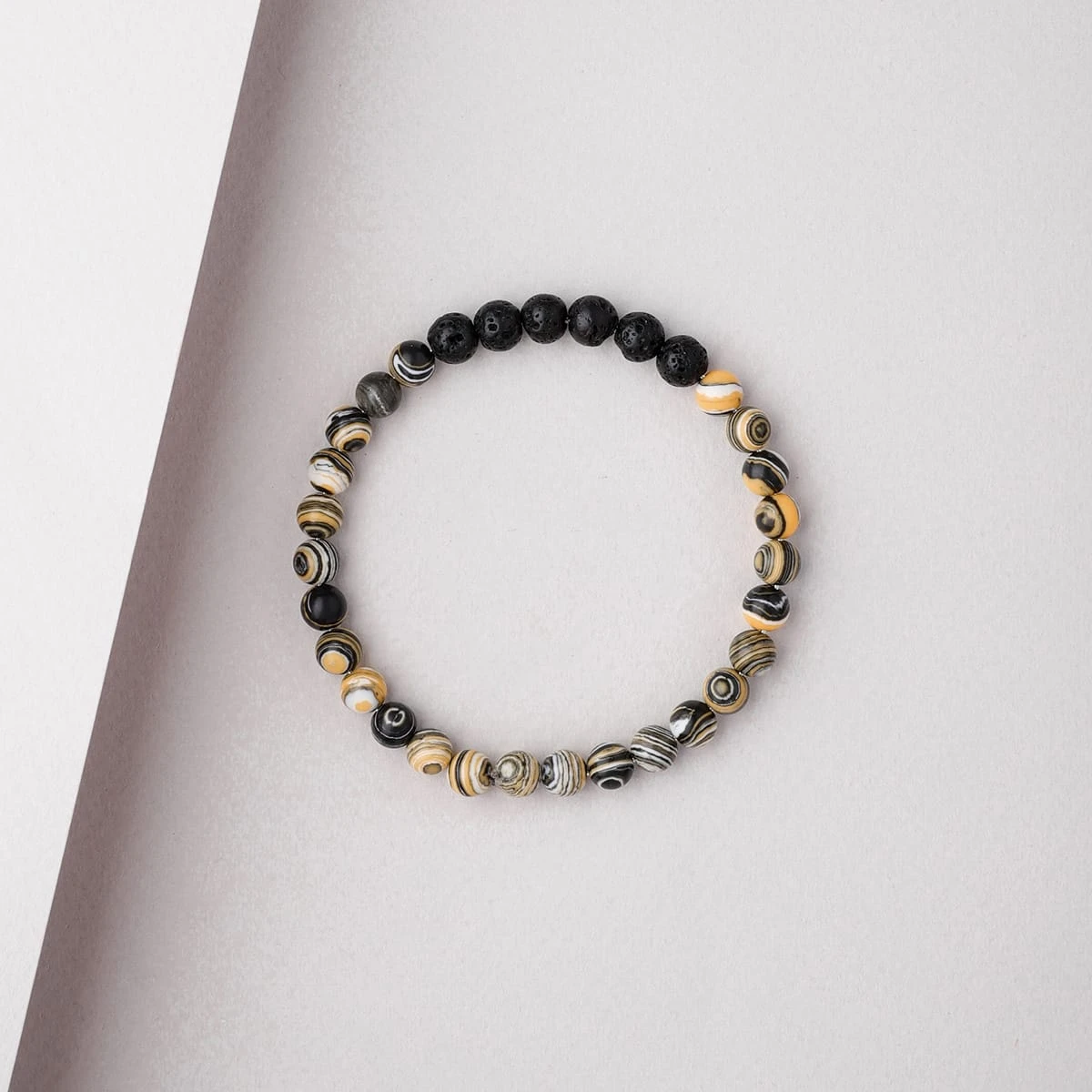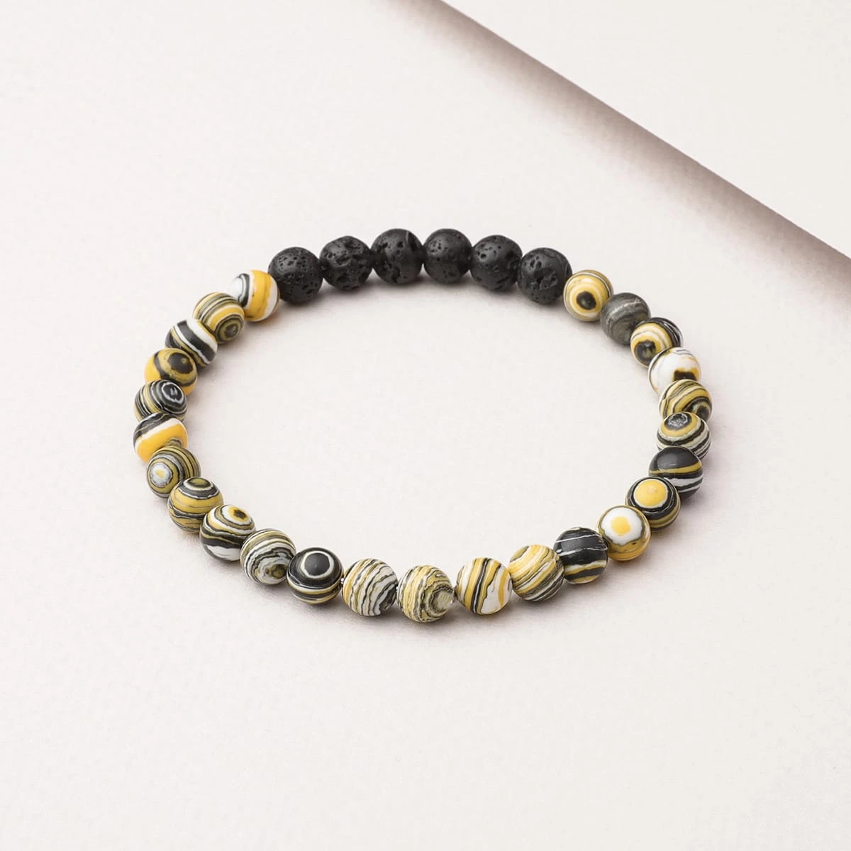 The Cosmic Diffuser Bracelet (Yellow) includes both Lava Stone beads and beads made of dyed Malachite. Malachite is a stone of luck that promotes abundance and acquisition, making it ideal for encouraging intention, balance, and manifestation.
