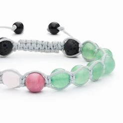 This handmade bracelet featuring rose quartz, aventurine, and pink rhodonite embodies fertility and love. Rose Quartz and Pink Rhodonite promote healing, love and compassion, carrying a tender, feminine energy. It is ideal for encouraging forgiveness, empathy, contentment, and fulfillment. Green Aventurine is a stone of luck and opportunity, promoting prosperity, wealth, and abundance. Pair this fertility bracelet with Ylang Ylang oil for added benefits.