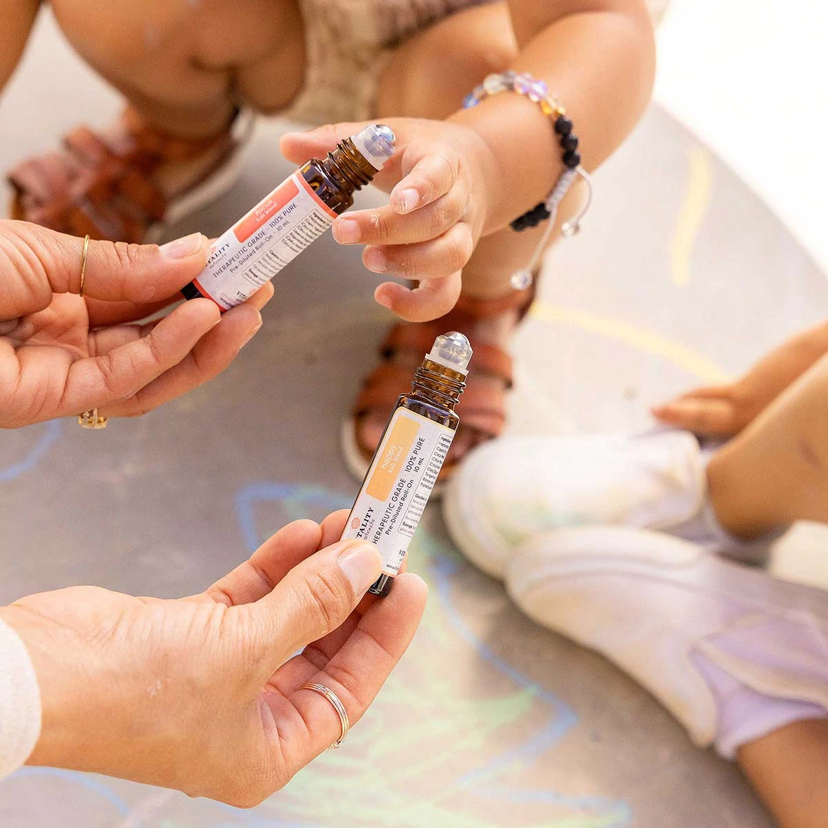 Roll the bottle between your hands before each use to ensure the essential oils are properly mixed. Then apply to pressure points on the body, such as the temples, bottoms of the feet, insides of the wrist. Or really anywhere that feels good to you!