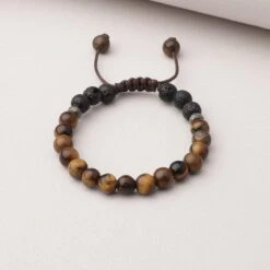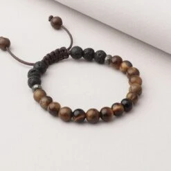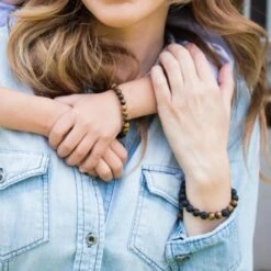 The Focus Kids Diffuser Bracelet includes Lava Stone beads, Pyrite beads, and beads made of Tiger’s Eye Stone. Tiger’s Eye is a stone of perseverance, protecting against negativity and promoting will power, which makes it ideal for encouraging patience, persistence, confidence, and courage. Our kids bracelets are made with a durable long lasting wax cord and tightly fastened to prevent breakage. We recommend inspecting the product prior to use to ensure safety as materials in this product can be a choking hazard.
