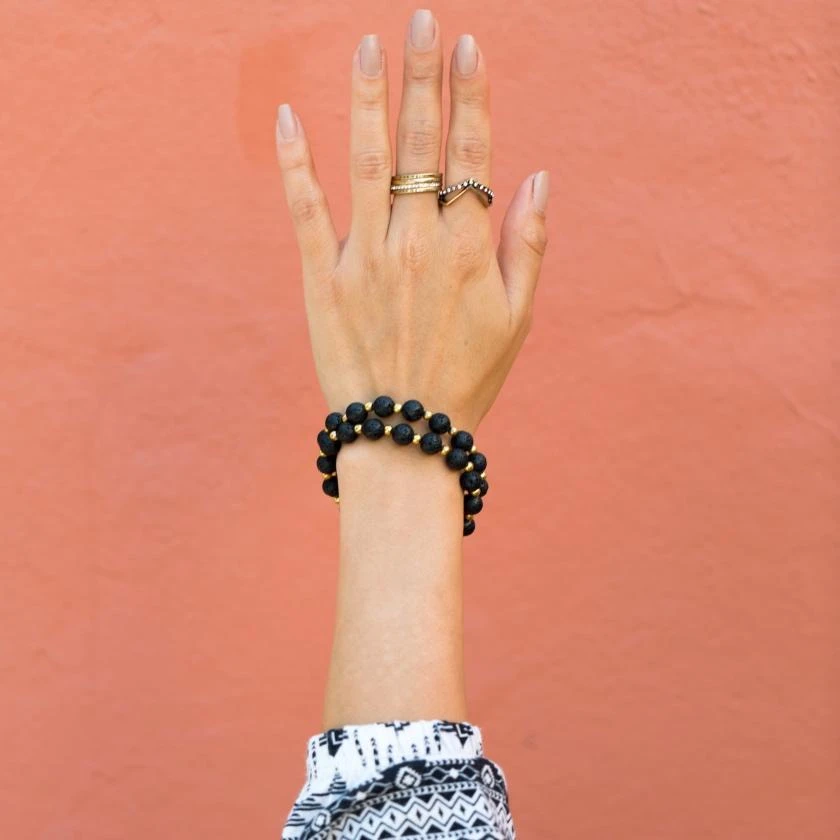 The Gold Fusion Diffuser Bracelet includes both Lava Stone and gold metal beads. Lava Beads are made from Natural Volcanic Basalt. The lava stones acts as a sponge-like carrier as it soaks up your oils and retains them in the core of the Bead. It is known to be a grounding stone that has connections to Mother Earth promoting strength, stability and courage.