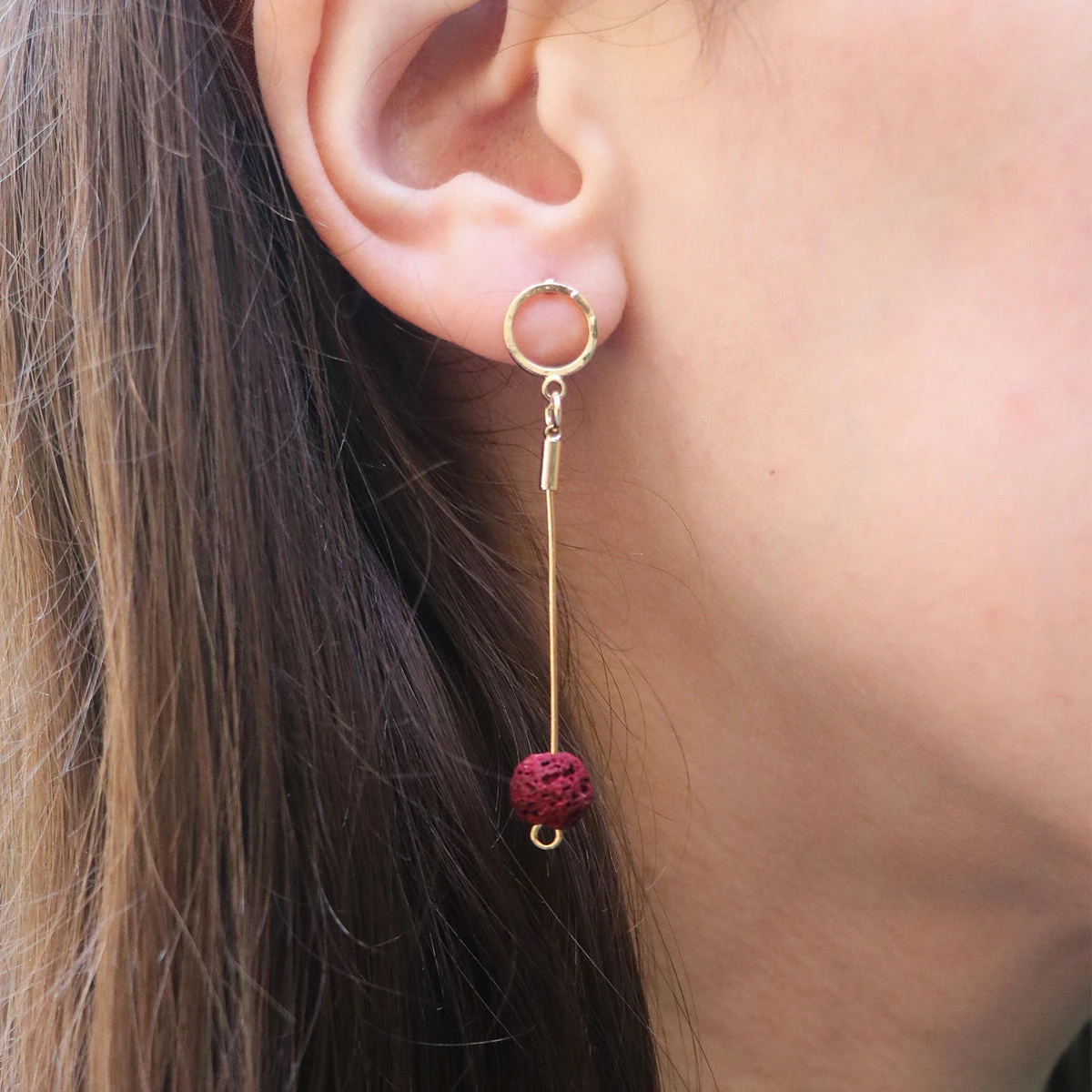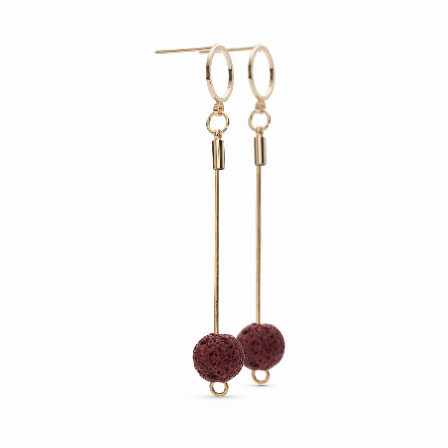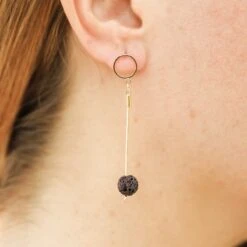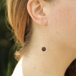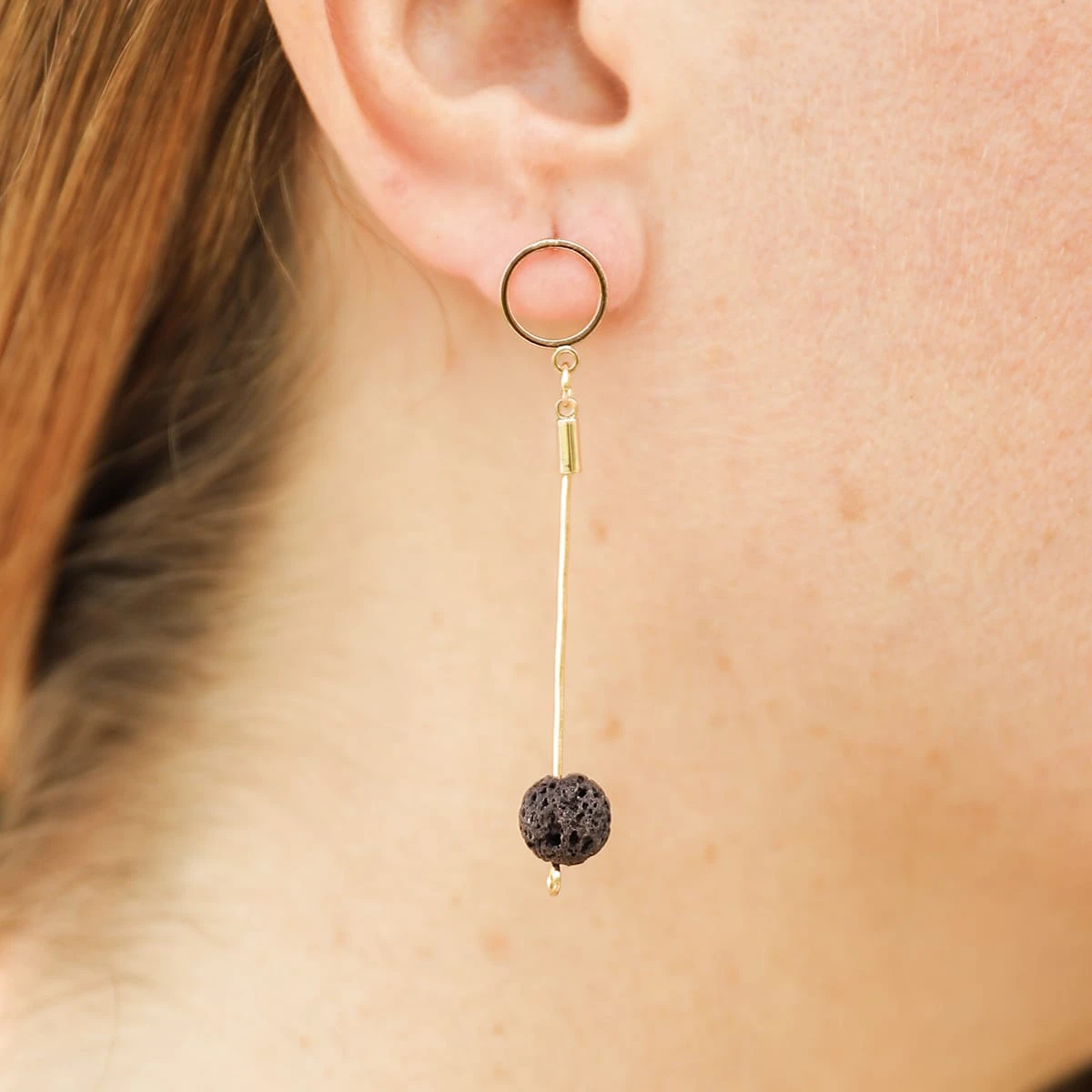 These aromatherapy earrings add function to elegance with their drop design finished with a single lava stone.