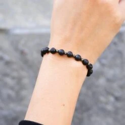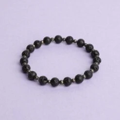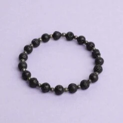 This diffuser bracelet includes Lava Stone beads complemented with Pyrite stone spacers.