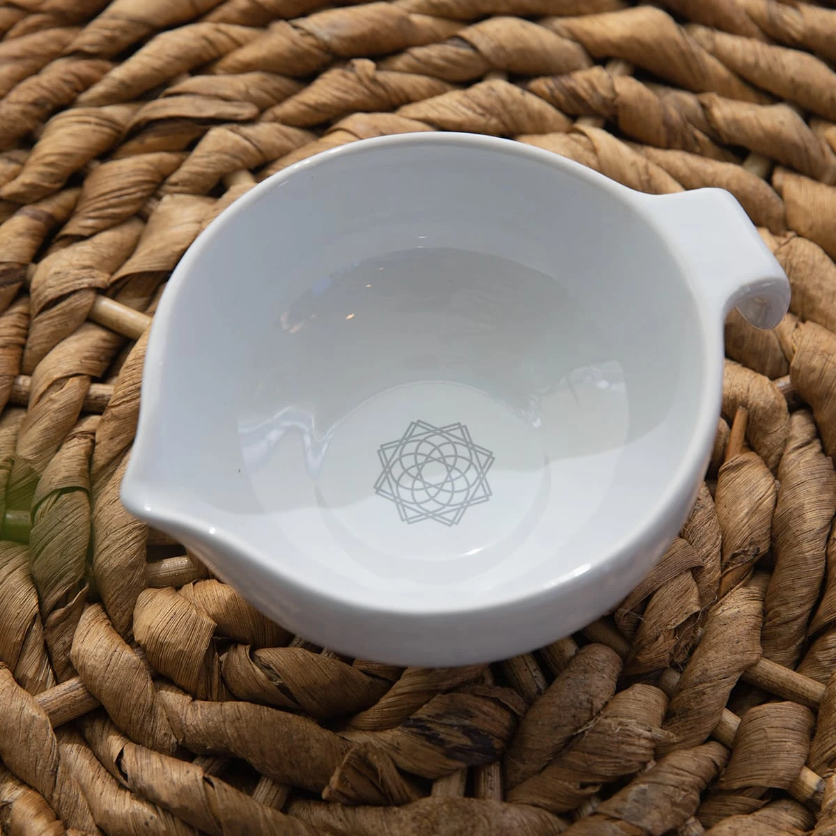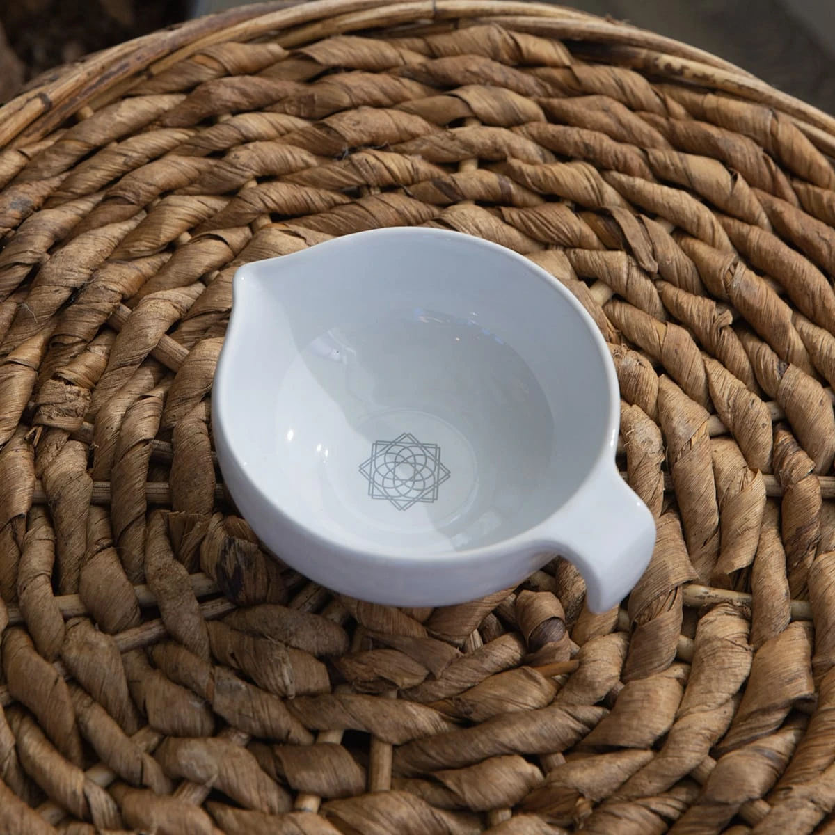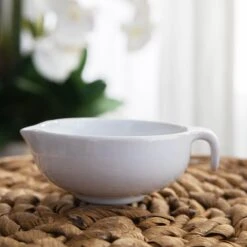 Made in Thailand from ceramic, this piece features a handle for a secure grip and small spout for a refined pour. Use our bowl to create new fragrances, mix potions and discover remedial tinctures.