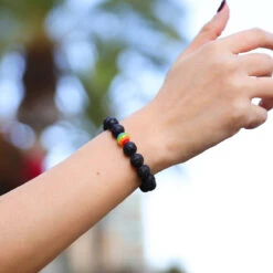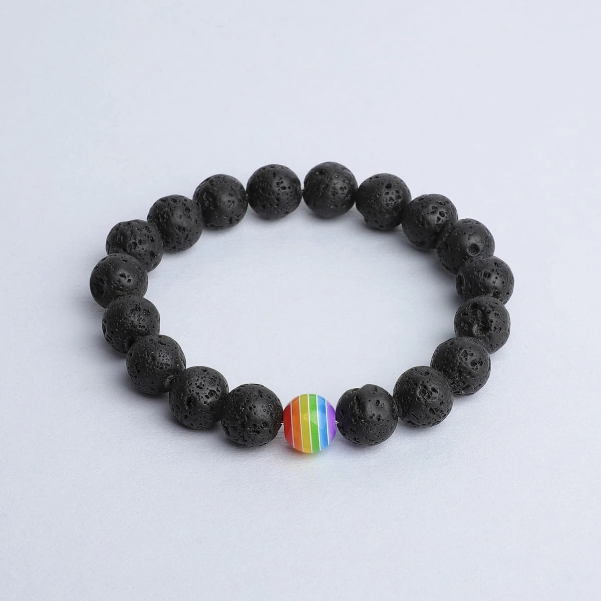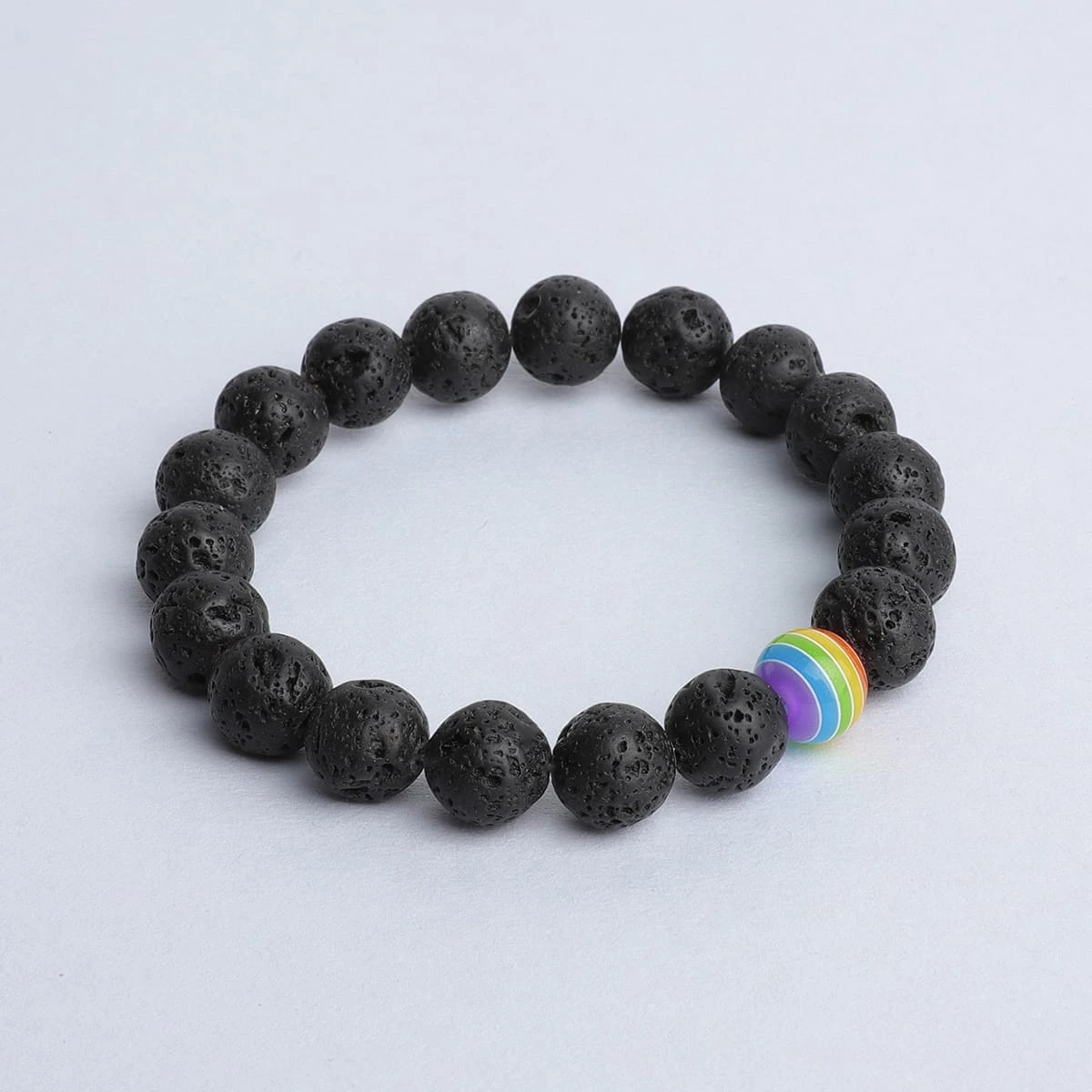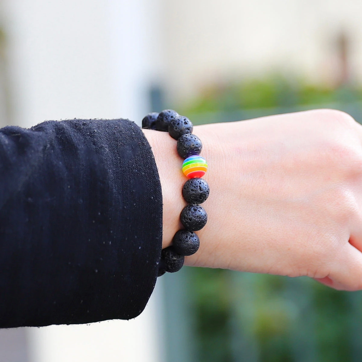 This bracelet is finished with a single rainbow bead to represent peace and growth.