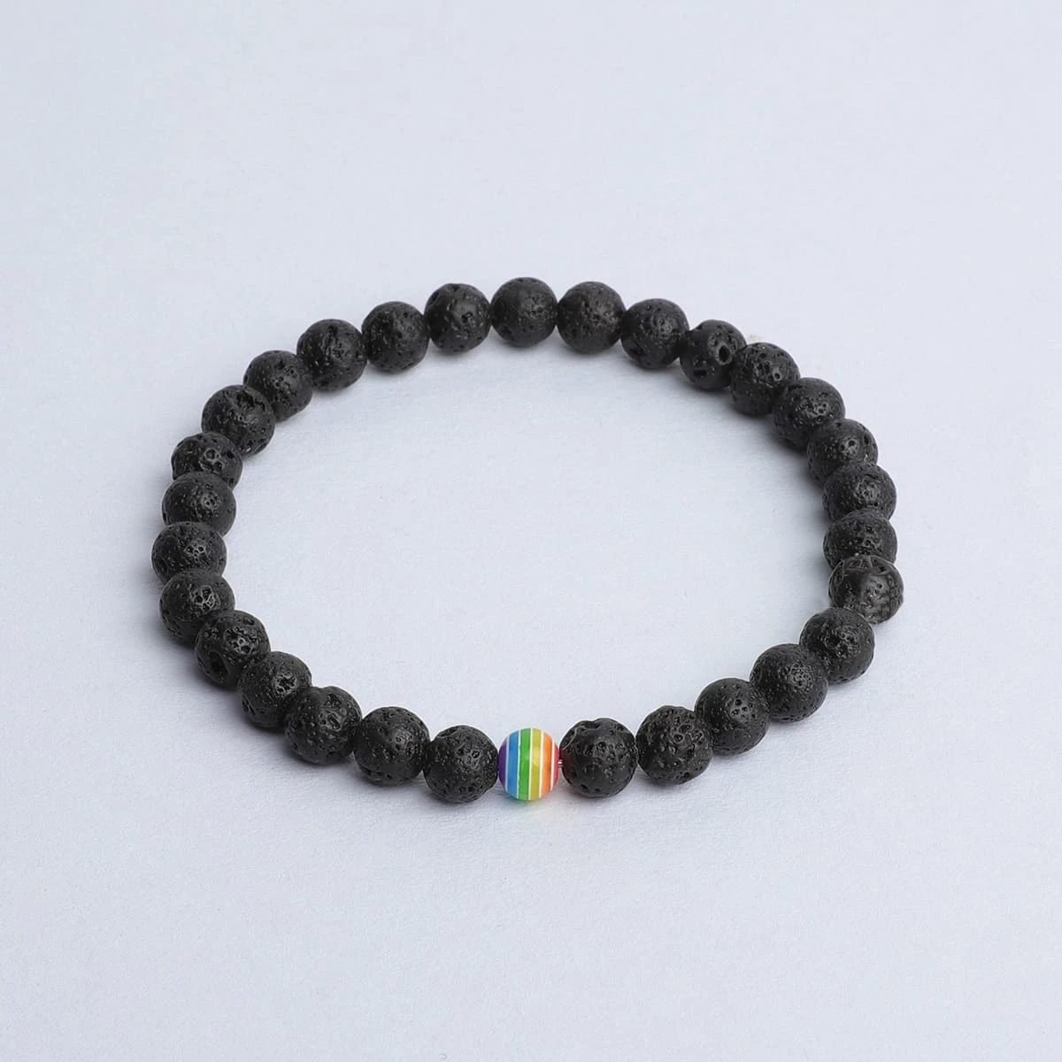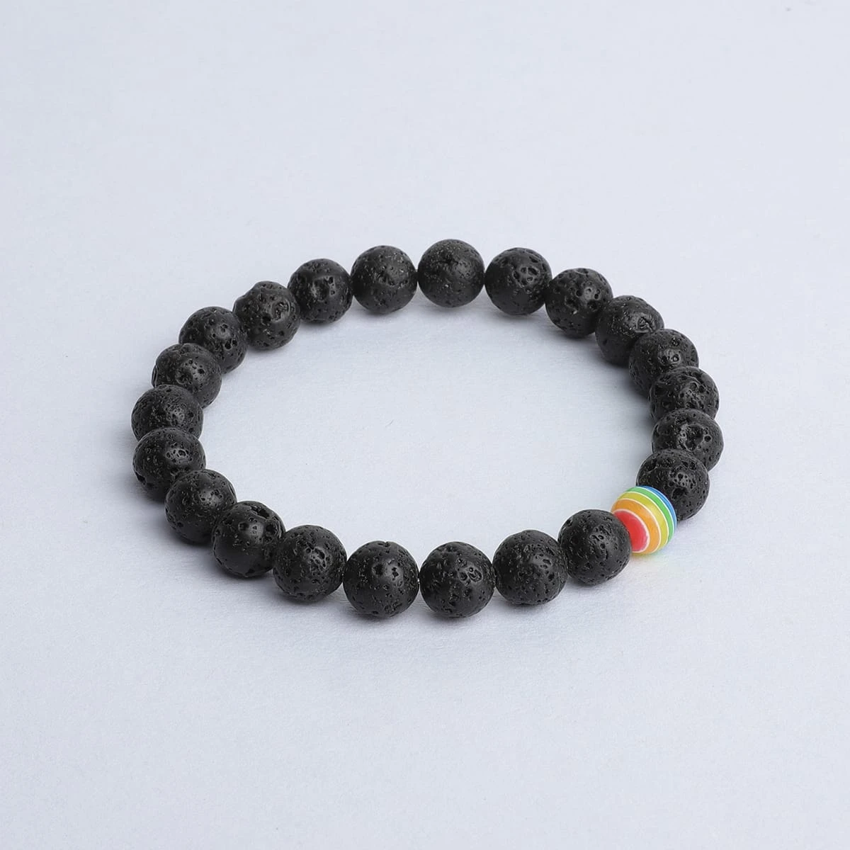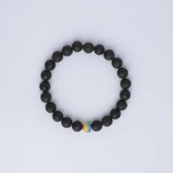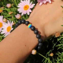 This bracelet is finished with a single rainbow bead to represent peace and growth.