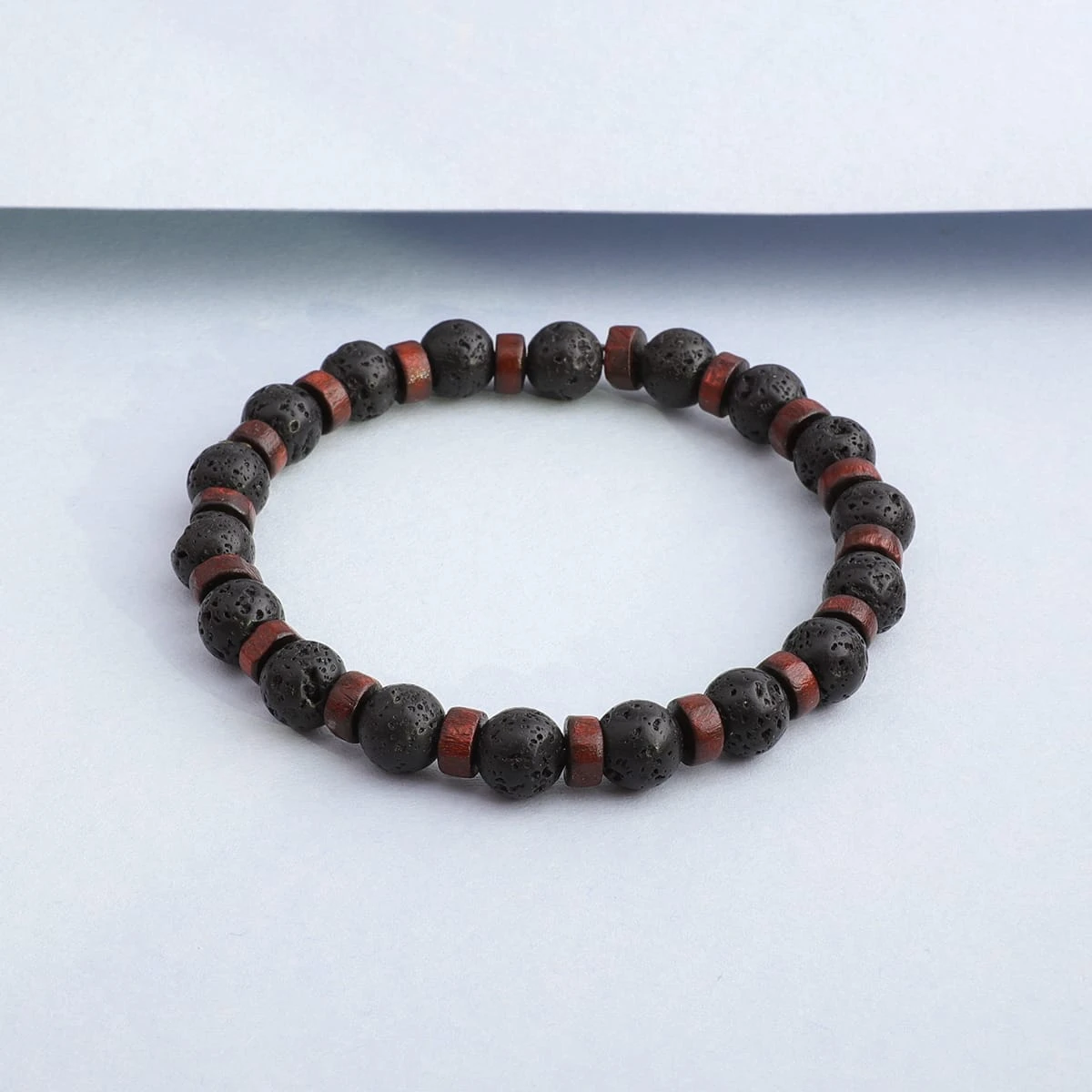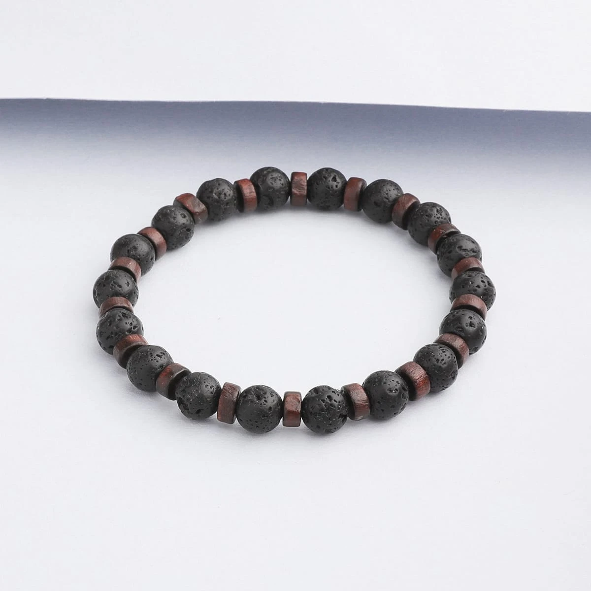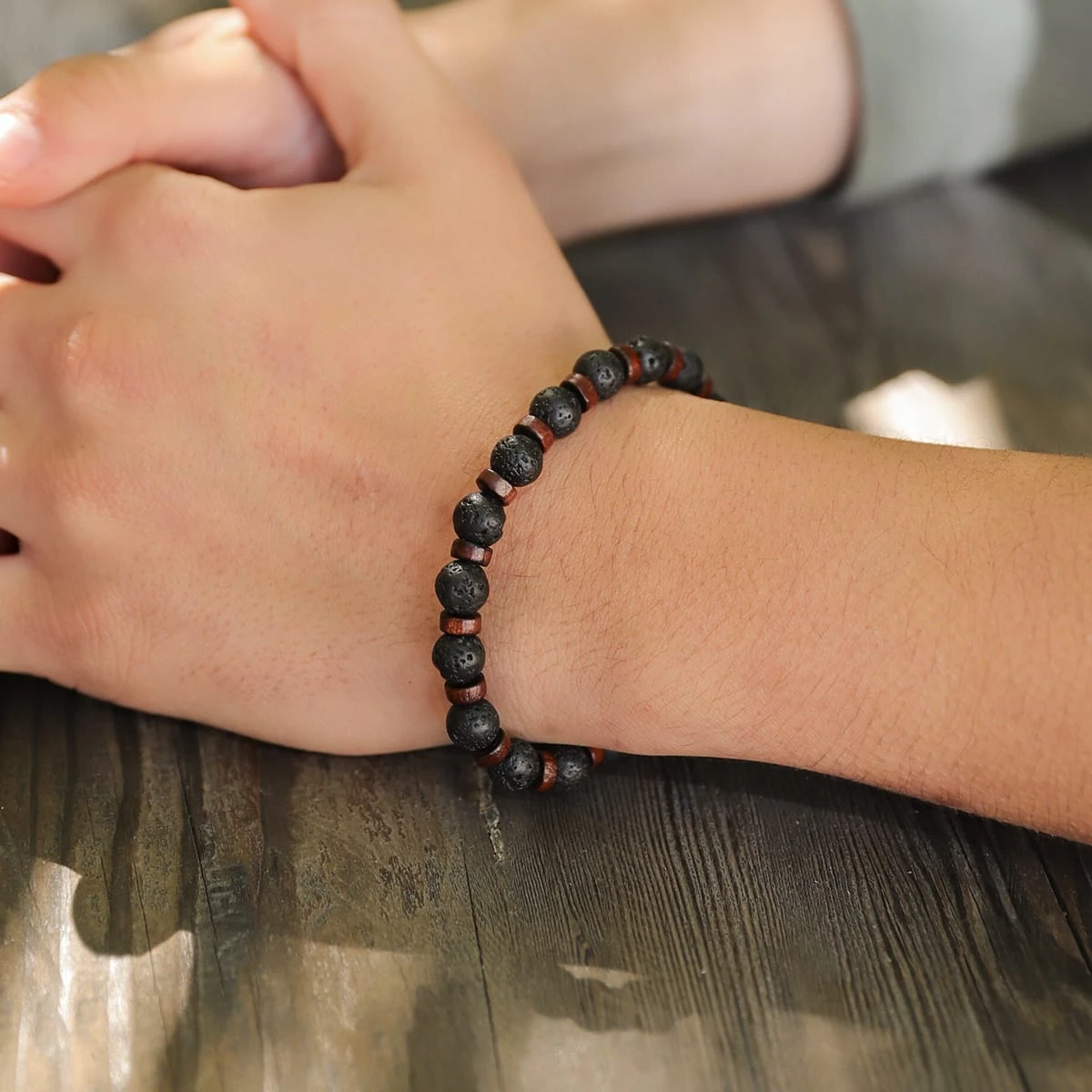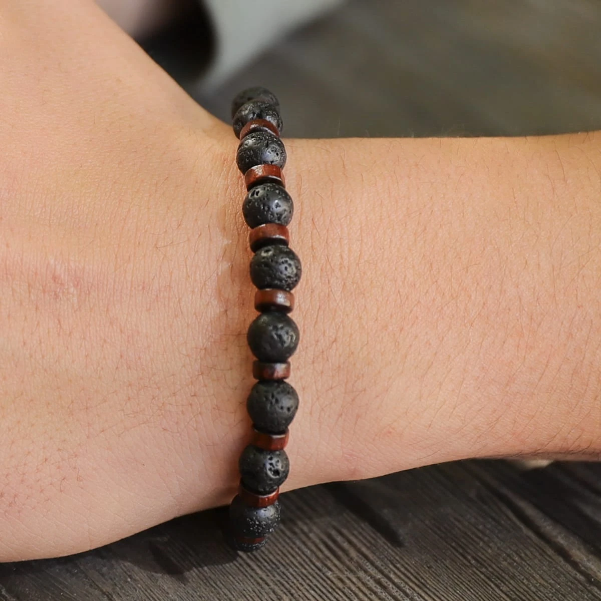 This aromatherapy bracelet includes Lava Stone beads complemented with dark wood spacers, creating a piece great for everyday wear and perfect to pair with your favorite Vitality Extracts essential oils.