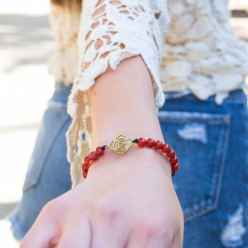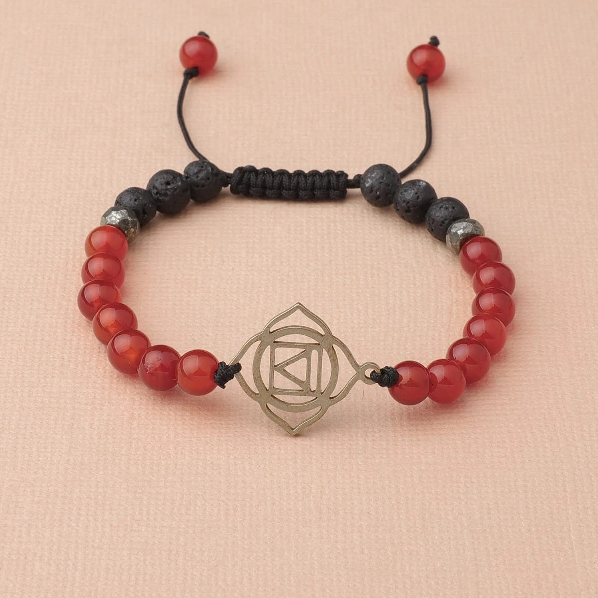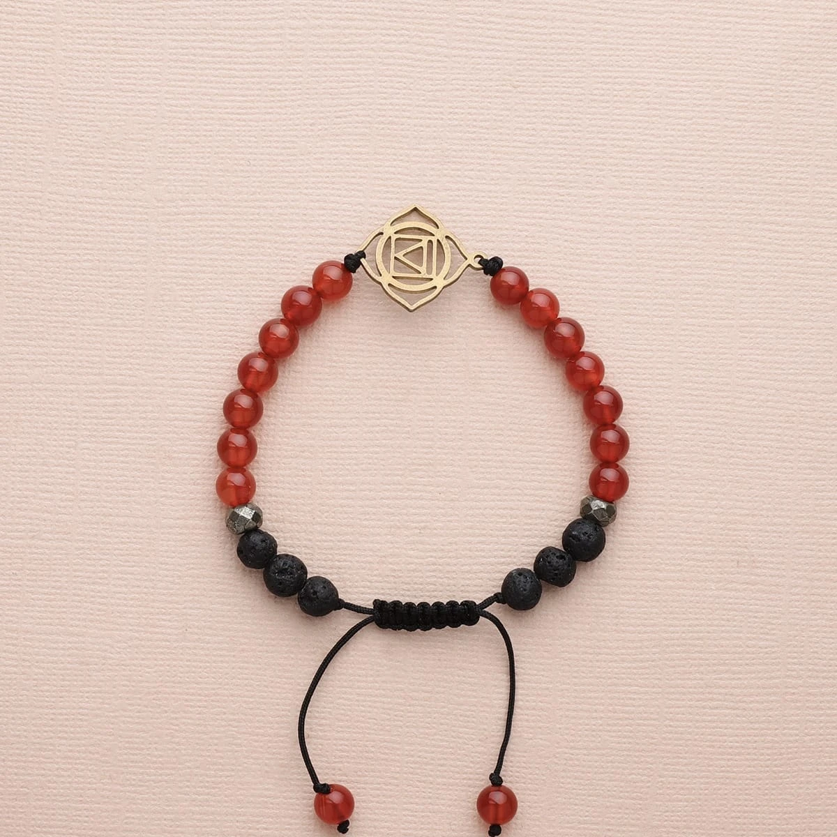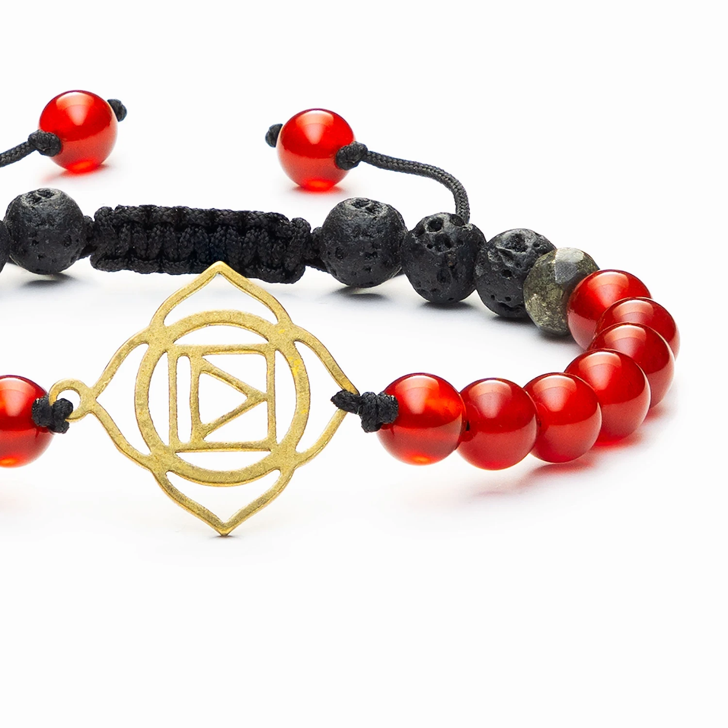 Located at the base of the spine, the root chakra provides the foundation on which we build our lives through our feelings of safety and security. Using red carnelian, pyrite and lava stone, this bracelet enhances will power to find grounding in life and further expand on our foundation. Lava Beads are made from Natural Volcanic Basalt. The lava stones acts as a sponge-like carrier as it soaks up your oils and retains them in the core of the Bead.