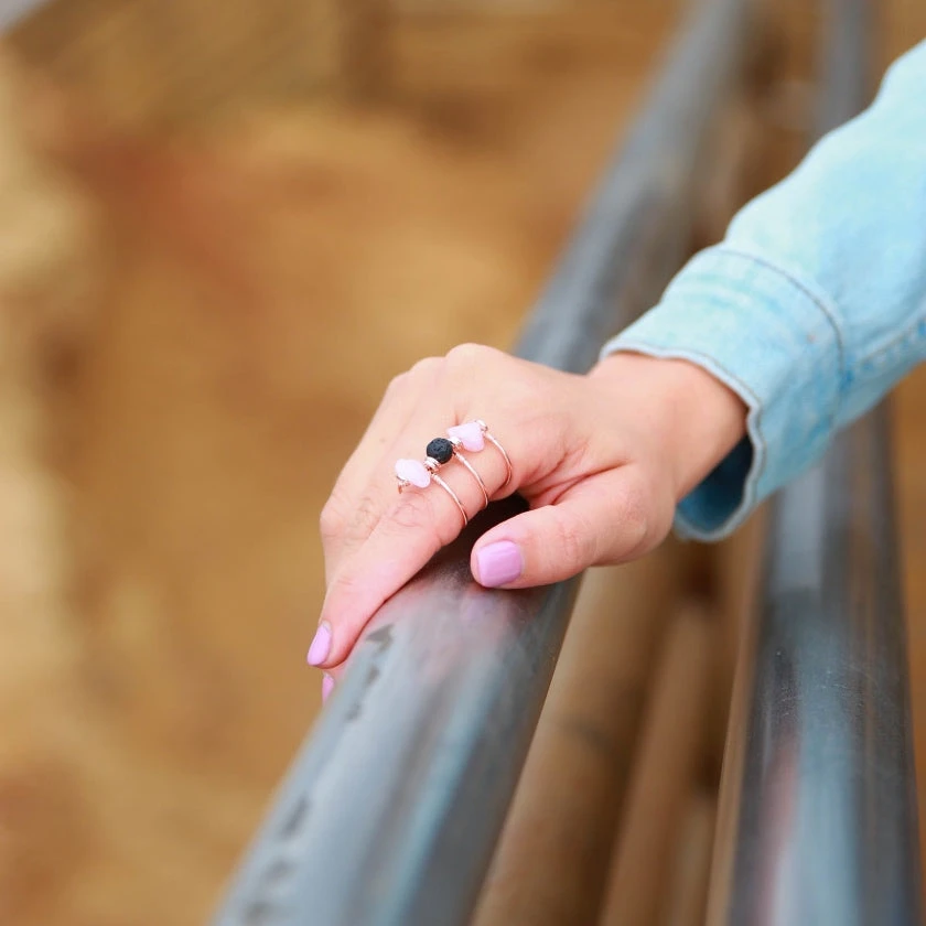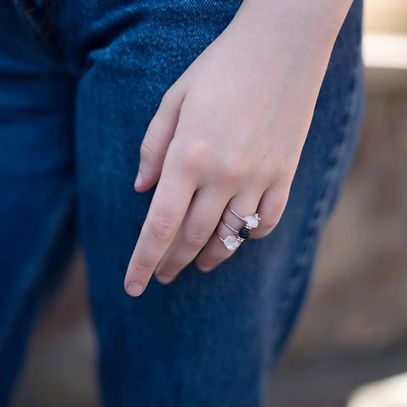 This hand wrapped wire ring is a beautiful way to diffuse your favorite essential oils. It is strong and sturdy yet has a delicate look and feel and can be worn casual or dressed up and makes a beautifully unique gift.