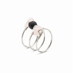 This stylish coil design features Rose Quartz stones and a lava bead. Rose Quartz is a healing, nurturing stone of love and compassion, carrying a tender, feminine energy. It is ideal for encouraging forgiveness, empathy, contentment, and fulfillment.