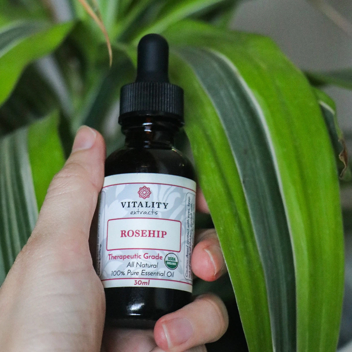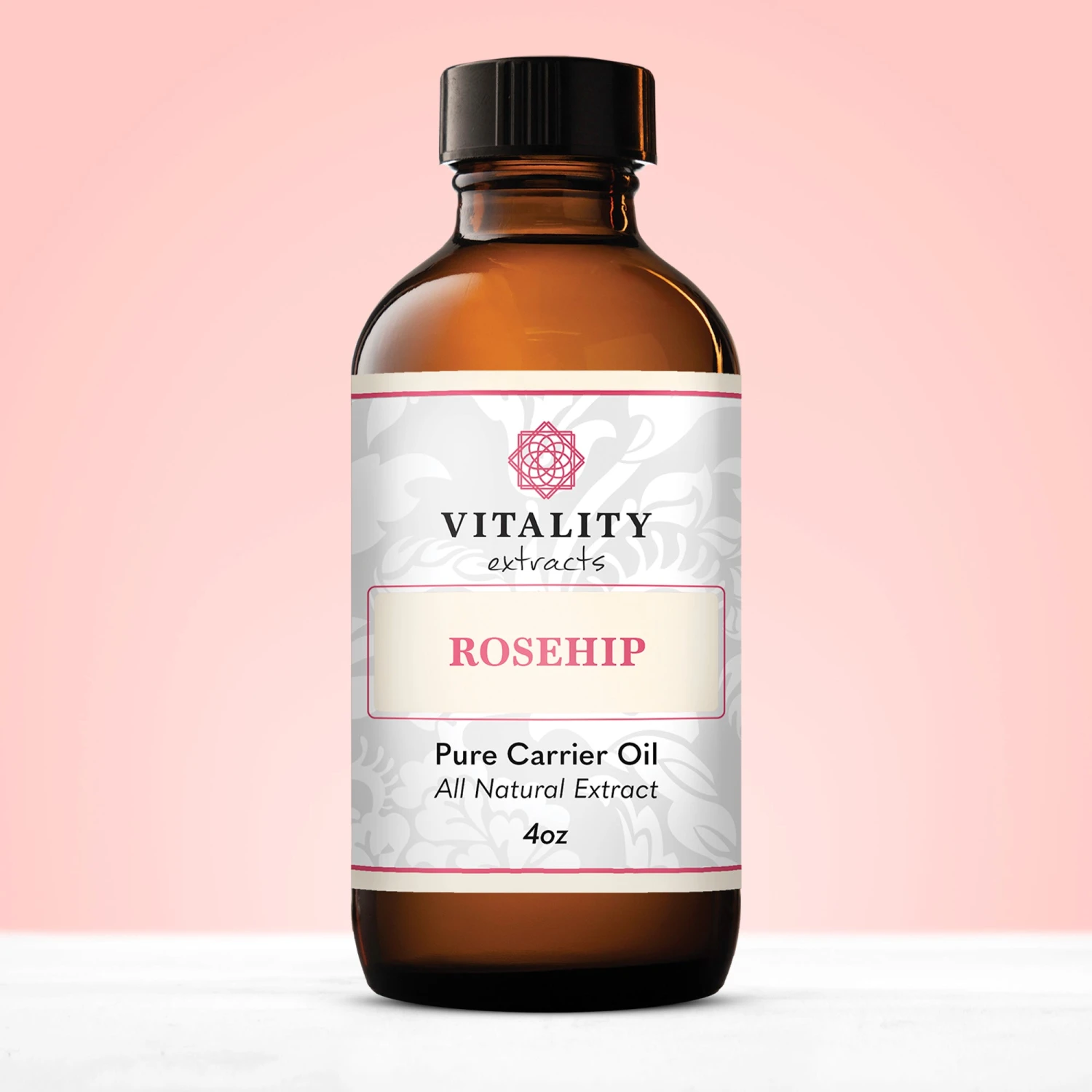 Rosehip oil is derived from the seed, is lightweight and absorbs well into skin.