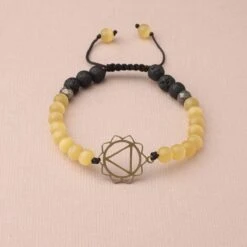Located at the upper belly (where your diaphragm rests), the solar plexus chakra is the source of personal power, will and self-worth. Using cat’s eye, pyrite and lava stone, this bracelet promotes confidence to radiate your power in the world. Lava Beads are made from Natural Volcanic Basalt. The lava stones acts as a sponge-like carrier as it soaks up your oils and retains them in the core of the Bead.