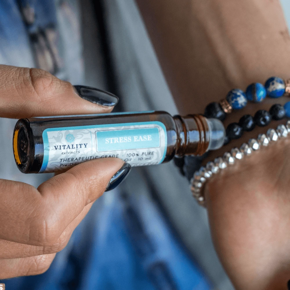 Stress Ease Essential Oil Blend is a natural blend created to respond to stress and restlessness. It will let your mind and body relax while uplifting your mood so you can be at your best throughout the day.