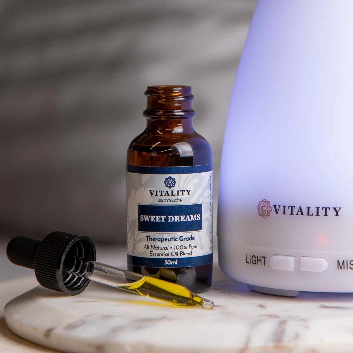 One simple and highly effective way to experience the benefits of Sweet Dreams is to diffuse before bedtime. Diffusing distributes the benefits of the 100% pure essential oils throughout a room or your entire home. Inhalation of the blend is highly effective in absorbing the natural oils into your system through your smell receptors to instantly calm and relax yourself.