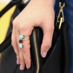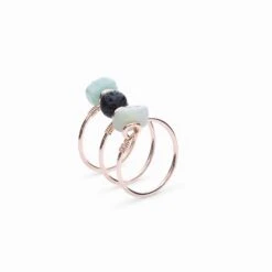 This stylish coil design features Amazonite stones and a lava bead. Additionally, Amazonite is a calming, soothing stone that promotes balance and harmony. It is ideal for building confidence and self-awareness, as well as encouraging self-discovery.