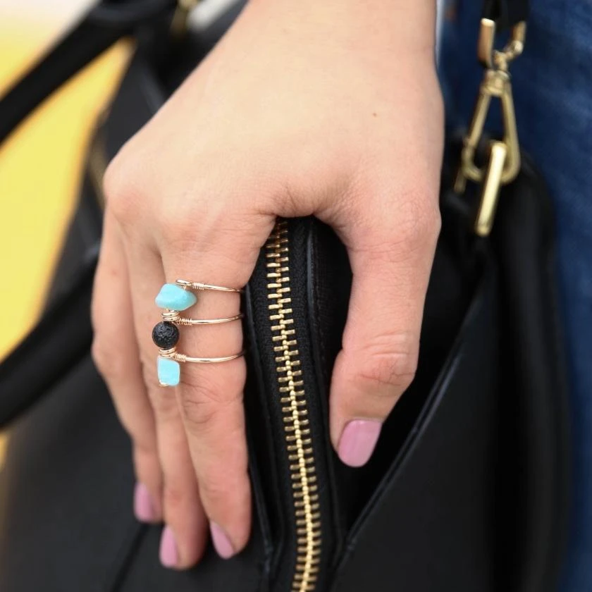 This hand wrapped wire ring is a beautiful way to diffuse your favorite essential oils. It is strong and sturdy yet has a delicate look and feel and can be worn casual or dressed up and makes a beautifully unique gift.