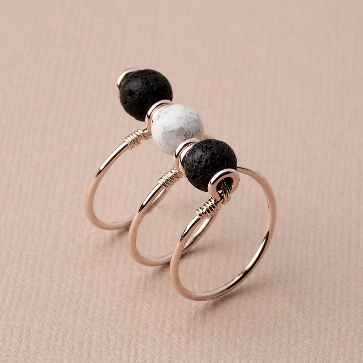 This stylish coil design features a Howlite stone and lava beads. White Howlite is a calming, soothing stone that dispels anxiety and stress. It is ideal for encouraging spirituality, patience, harmony, and meditation.