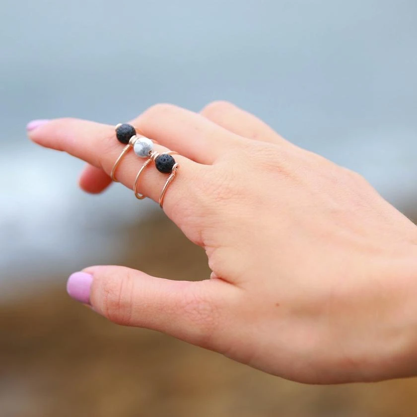This hand wrapped wire ring is a beautiful way to diffuse your favorite essential oils. It is strong and sturdy yet has a delicate look and feel and can be worn casual or dressed up and makes a beautifully unique gift.
